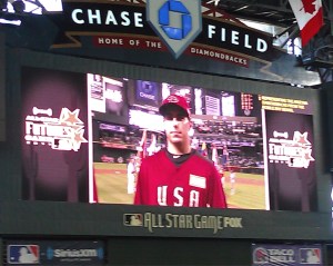 Taken on the Chase Field videoboard, it's former Osprey first baseman Paul Goldschmidt, represeting the US team in the XM All-Star Futures Game.